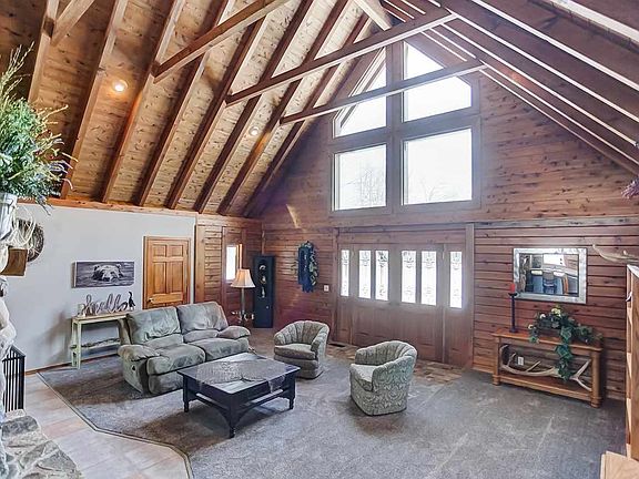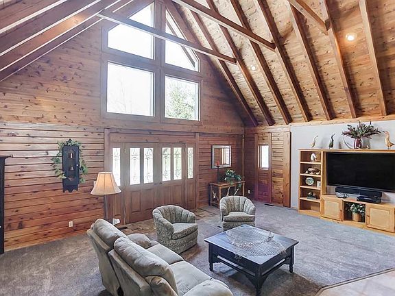 Check out this beautiful Cedar Log home in Huntertown. This 3 bedroom 2.5 bathroom is situated in the NWAC school system and has a full finished walkout basement and an attached garage. It sits on 10 acres with a stocked pond and a private pole barn that has concrete flooring, a wood burner, 200 amp service, and is R19 insulated. Be amazed by all of the stunning woodwork throughout! Enjoy high beamed cathedral ceilings in the living room making it nice and open. The living room also boasts a cozy wood burning stone fireplace. There is a huge wall full of windows, making the home nice and bright with natural light. It gives a nice scenic view of the property! Open to the living room, the newly updated kitchen is spacious and has a great island, lots of cabinets and countertop space, and new lighting fixtures. With an open picture window into the 4 seasons room, the kitchen is a great room to gather and entertain. The master bedroom is very large and has an en-suite with a double vanity. There are 2 other spacious bedrooms and another full bath on the main floor as well. Upstairs there is a great loft space that can be used as an office, additional family space, lots of possibilities. Downstairs you can find a full finished walkout basement with room for entertainment, a workout space, or a playroom. There is a half bath with plumbing for a shower as well. Out back you will enjoy a wonderful 2 tiered patio space perfect for entertaining outside. The property has lots of mature trees as well providing a nice and private atmosphere. With all 10 acres, it is great for hunting too! There is geothermal heat so it is nice and energy efficient. This home has new carpet, ceramic tile, and the bathrooms has been updated. A new roof was done in 2016. Also, the asphalt drive was resurfaced in 2017. With many updates, wonderful cozy features, and striking curb appeal, this home is waiting for you to call it yours today!