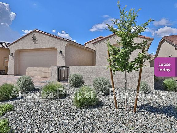 Gorgeous Belice Model built in 2020. This home features 4 bedrooms, 2 bathrooms, and a 3-car tandem garage. The open concept kitchen and great room come complete with gorgeous quartz countertops, a huge oversized working island, upgraded cabinets, and stainless steel appliances, including a gas range. Enjoy the main suite features, including dual vanities, a garden tub, a luxurious shower, and a large walk-in closet. The multi-slide door opens to your extended covered patio and a beautifully landscaped low maintenance yard featuring a large turf area and more. Many more upgrades, including a pavered front porch area, paver walkways, and the 8' garage door is ideal for those high-profile vehicles! This home has energy-saving features like multi-zone HVAC and tech features like Bluetooth keyless entry and smart thermostats! The owner is a licensed real estate agent in the state of Arizona. Monthly Rent $2245 Monthly Resident Benefits Package $45.95 Refundable Security Deposit $2245 Non-Refundable Admin Fee $250.00 Non-Refundable Rekey Fee $100.00 Refundable Pet Deposit (no cats please) $300.00 per pet (if applicable, does not apply to assistive animals) All Arizona Property Brokerage residents are enrolled in the Resident Benefits Package (RBP) for $45.95/month, which includes renters insurance, HVAC air filter delivery, credit building to help boost your credit score with timely rent payments, $1M Identity Protection, move-in concierge service, making utility connection and home service setup a breeze during your move-in, our best-in-class resident rewards program, and much more! More details upon application. As a company, we do business in accordance with the Federal Fair Housing Law and welcome Persons of all Race, Color, Religion, Sex, Handicap, Familial Status or National Origin. Amenities: children's playground, biking/walking path