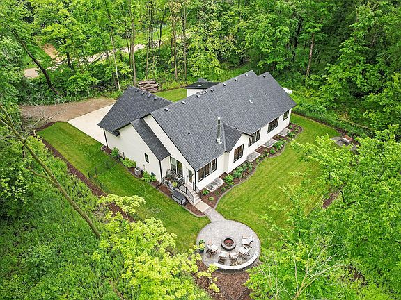 WOW! Amazing private retreat on 2.5 private wooded acres of a nature lovers paradise! Custom built 2022 rambler with high end finishes throughout. Upon entering your will be greeted by open spaces,9-ft,ceilings and tons of natural light. There has been no detail overlooked! Main level has an open, modern feel, leading to your cozy sunroom, that offers the perfect spot to relax and enjoy the views of nature all year round. Convenient main level laundry and mud room right off your 1200 sq ft garage. LL features a huge family room and two additional large bedrooms, providing extra space for relaxation and entertainment. Custom Hunter Douglas Blinds throughout, heated bathroom floors, concrete driveway, RO system for drinking water and whole house Generac Generator system. Extensive landscaping around the home and beautifully designed paver fire pit area that complements the natural surroundings of this gorgeous property. This exquisite home offers the perfect blend of luxury and nature!