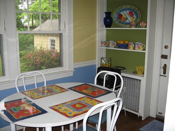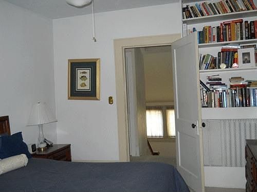 Drastic reduction. Charming home on lovely street with sidewalks, hardwood floors, pretty kitchen w/bead board winscot, bedroom on main level, open plan for older home with lots of built-in shelves & cabinets, security, 3 full baths, french doors, upper studio or office, large fenced yard, updated electrical, front porch, detached garage, home is being sold ''as-is''.