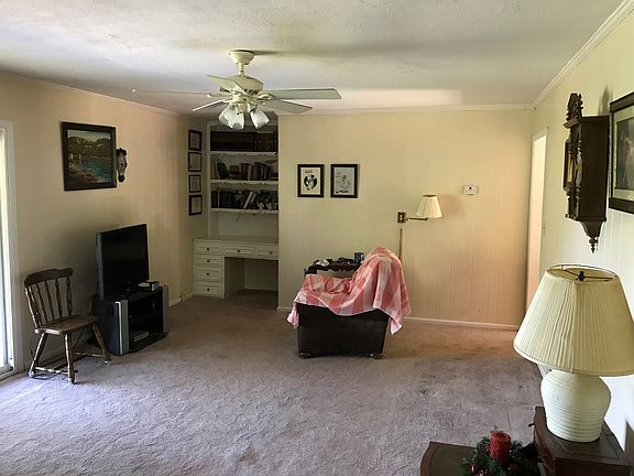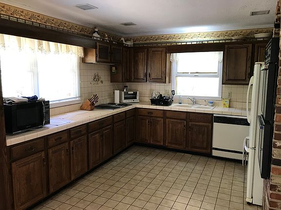 Camden Tennessee Home For Sale, This home has a full basement with additional living quarters, there is a full kitchen, living room, bath and bedroom in the basement. The main level of this Home For Sale has 3 bedrooms, 2 baths, Living room , Den with brick fireplace. The Kitchen of this Benton County Tennessee Home For Sale has oak cabinets, tile counter tops, double oven with lots of workspace. The dining area has lots of windows to let in the natural light. This Country Home For Sale has a large covered deck overlooking the back yard with pond, fenced area for your pets and pasture. If you like to fish, the Tennessee River and Ky Lake is within minutes of this beautiful home. Located in Benton County Tennessee this home is just a few miles for the Nathan Bedford State Park and Eva Beach.
