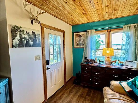 The ranch's 3-stall barn offers spacious 12x12 stalls along with a large tack room extra space to store hay and grain with convenience of water and electricity, while an additional 2-stall barn provides 12x24 of space, ensuring ample room for your equine companions. There is a space for an automatic water just outside the 3 stall barn. A large 50x30 pole barn with electric LED lighting and water, also a plug for a Living quarters trailer or a camper, allows for convenient storage of equipment and supplies.