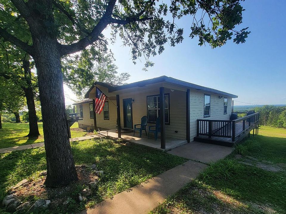 Welcome to paradise! This 4 bedroom 2 bath home features a wrap-around deck with a view of the lake. The home is freshly decorated and move-in ready. The large eat-in kitchen, plus new flooring, fresh paint and updated features will make this feel like you are in an AirBnb. Have peace of mind with hardie board siding. Almost 6 usable acres provide additional features including a fenced garden area, a 12x30 greenhouse, an outbuilding, and full RV hookup area. Don't miss looking at this one!