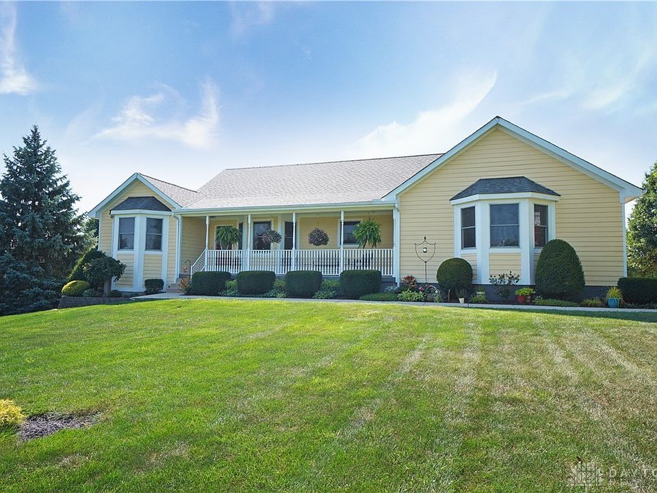 Beautiful Country Ranch Home on 1.23A, with private backyard on a cul-de-sac. Welcome home to a full front porch! This spacious split ranch offers large living space throughout! Great room features gas fireplace and walkout through an all season's room with views of an expansive deck! Formal DR off chef's dream kitchen with hardwood floors and an abundance of cabinets, a double oven and electric cooktop, full appliance package. Primary Suite featuring walkin closet (2 closets) and spacious bath with whirlpool tub and separate shower. An amazing walkout basement with a great wet bar for entertaining. Sellers are also offering the fun features such as a pool table and shuffle board table! Finished area has a gas FP, full bath, laundry area, and walkout and egress windows for extra natural light, leading out to a patio and 1+A lot, perfect for the future pool!!!There is an adorable She-Shed with covered porch terrific for storage or hobbies! Updates include AC (5/2021), Double Over (9/2022), Dishwasher (1/2018); Roof (12/2021). Conveniently located within minutes of Lebanon and SR 48! A bit of Heaven in a Country Subdivision, Turtlecreek Township!