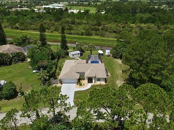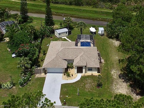 Meticulously maintained three bedroom 2 bath pool home in NW Palm Bay. Screen enclosed salt water heated pool comes with vacuum system and retractable solar blanket. Large trussed patio is perfect for entertaining and afternoon barbeques. Master bedroom and bath feature his and hers walk in closets, double vanity, garden tub, and shower. Versatile split open floor plan is great for entertaining guests. Spacious kitchen features stainless steel appliances, breakfast bar, large pantry, and overlooks family room and pool. Private back yard has a brick paver walkway leading to 2 sheds and backs up to the Palm Bay Regional Park with bridge access just a few feet away. Come see this magnificent house today.
