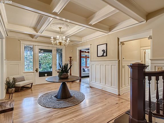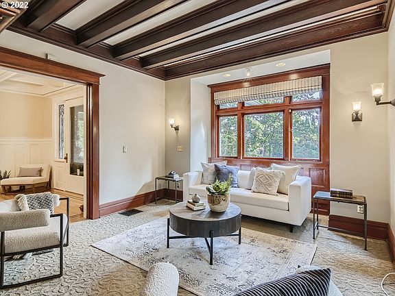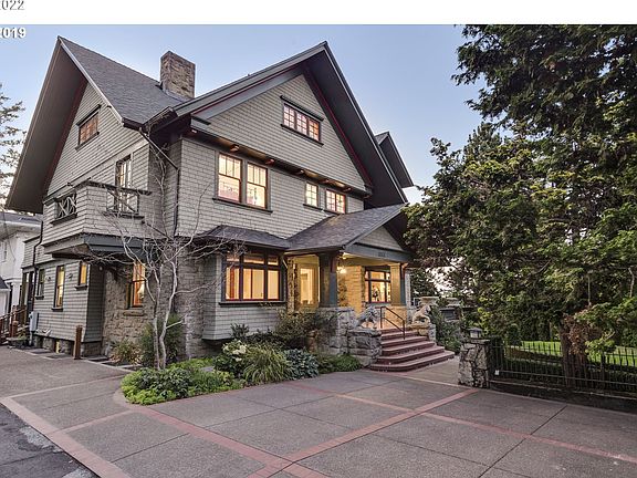 Beautiful historic home restored by designer, Robert Trotman. Located in the Portland Heights"Grid." Features custom inlaid hardwood floors & original Povey stained glass windows. Entertainer's dream w/ two kitchens, butler's & baker's pantries. Primary ensuite w/ double shower and heated marble floors. Two laundry rooms, basement w/ theater, billiard & exercise rooms. Spacious 2-car garage with 4 additional parking spaces. Sport court & stunning city & mountain views!