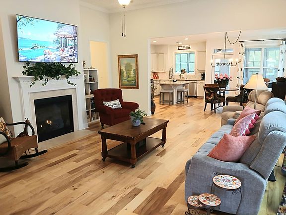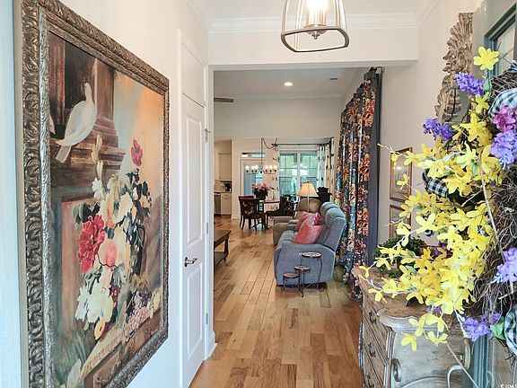 *This home is a short golf cart ride to the public beach, the State Park and all the shopping and dining experience in The Market Common as well!*  Welcome to 1883 Suncrest Drive in the sought after community of Cresswind, within The Market Common of Myrtle Beach. You will appreciate the newness of this home from the moment you enter.  Welcoming honey-wood flooring invites you into the living room with tall ceilings and a beautiful gas fireplace.  The open floor plan allows you to see all the way thru to the back of the home with an abundance of light filled windows.  Two bedrooms and a bath are on one side of the home.  One bedroom has a queen-sized murphy bed.  The kitchen has a sizeable pantry, island, gas stove/oven and a palladium window to look out onto the three-season room and wooded backyard.  The private, primary retreat does not disappoint with trey ceiling, oversize tiled shower, linen closet, extra-long double vanity and an unexpectedly large, walk-in closet.  The expanded, extra-long, two car garage is ready for your added golf cart, bikes, golf clubs or workstation.  Here you have the best of two communities.  First, The Market Common experience with restaurants, unique shops, movie theater, grocery stores, community center, ball fields and more.  Next, enjoy your personal Cresswind community which offers a beautiful year-round pool and hot tub, outdoor grills, amphitheater,  large brick patio with fireplace, tennis courts, pickleball courts, bocce ball courts and it's fantastic Amenity Center with yoga room, weights and aerobic area, library, craft room with kiln, poker and pool tables, kitchen and large, indoor gathering areas with too many activities and clubs to list — all of which create a lifestyle of relaxation, fun and opportunity within the community.  If that were not enough, the beach is only a golf cart ride away!  It's real.  It's here.  It's now!  It's waiting for you!  The monthly HOA fee includes WIFI, lawn care and amenity center use.  Most, but not all of the curtains/drapes will convey with the sale.