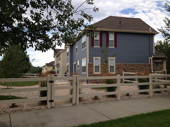 Beautiful home in excellent condition on a corner lot with mountain views in The Village at Harmony Park. Directly across from park, elementary school, and short walk to community pool. Features granite countertops in the kitchen and baths with new hardware, new bronze light fixtures, all new stainless steel appliances, new carpet and wood floors (entire main floor wood except laundry), new interior/exterior paint, new smoke/CO2 detectors, radon mitigation system, finished garage, sprinkler system, front porch and back patio, fully finished basement & finished crawlspace, 2014 roof, beautiful landscaping, and fenced yard. Non-pet, non-smoking, very well-maintained home with southern exposure. Shoes never worn in the home. IMMACULATE!