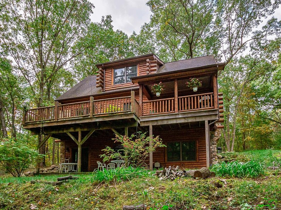 NATURE-PRIVACY-PEACE & TRANQUILITY ALL AWAIT YOU ON 2 ACRES ON THE QUIET END OF NOAH LAKE, JUST OUTSIDE THREE RIVERS. This comfortable and spacious custom built log home greets you with its 22 high ceilings, and a huge fieldstone fireplace as you enter. Enjoy the main level deck with total relaxation of nature and the water below. The main level features Oak hardwood floors throughout, kitchen with island seating, Hickory cabinets, stainless steel appliances, a laundry/mud room, bath and bedroom. The upper level is a private master suite with a bonus sitting room. The lower level has 2 bedrooms, a bath, family room and a sliding glass door to a patio area. Enjoy all wildlife, including deer and turkey as the serenity of water, woods and nature surrounds you.