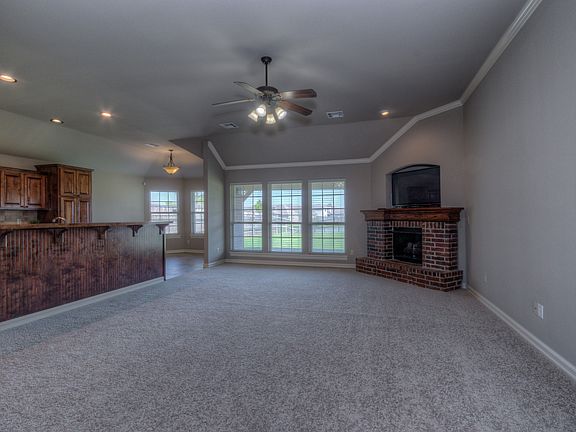 Amazing 1 owner home built by Banner Homes. Gorgeous large kitchen with island bar overlooking living area with brick fireplace. Huge master and spacious walk=in closet w/separate bedrooms on other side of home. New carpet and paint. One of the larger lots in Stone Creek Farms next to neighborhood clubhouse pool. enjoy the pond view and sound of fountains from large covered back patio. Added bonus is the access gate from your backyard to the pond to go fishing or just enjoy sitting on the bank