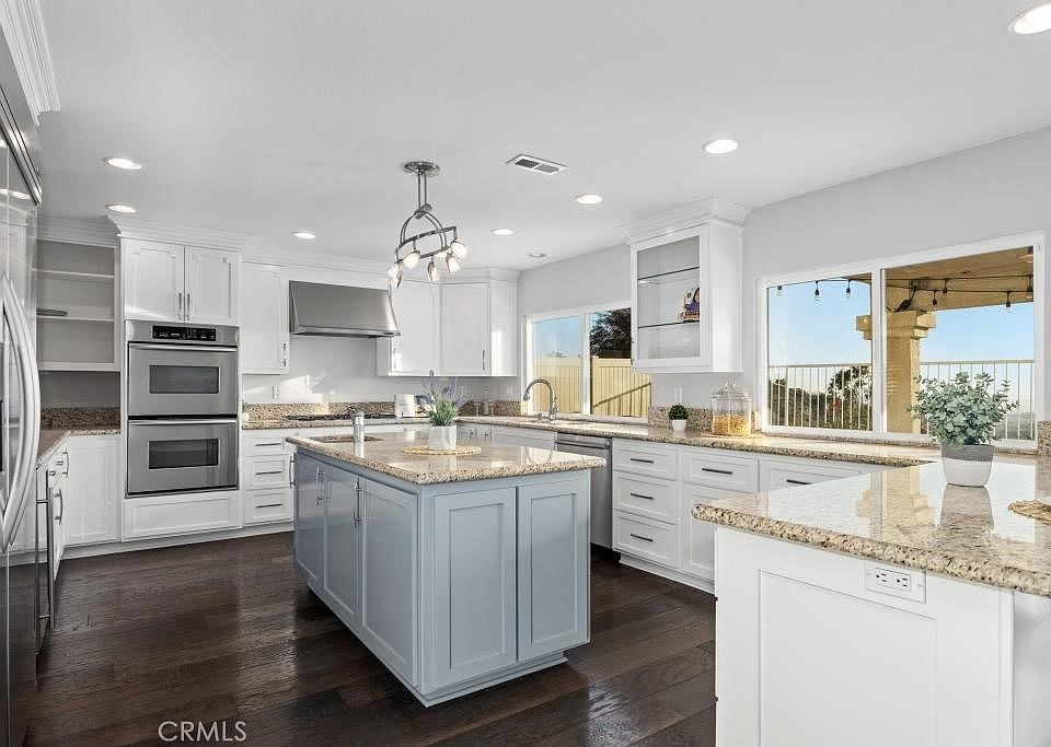 Breathtaking & unobstructed mountain and ocean view from this gorgeous Alderwood home! Peaceful & private 5 bed, 2.5 bath home w/views from the Whiting Ranch Trails to Catalina Island w/city lights in between. This immaculate home is move-in ready & boasts a fully remodeled & expanded gourmet kitchen. Stainless steel double convection ovens, granite counters, plenty of storage, & 2 breakfast counter areas. Family room w/stacked gas fireplace, separate dining area, & sliding doors to the covered patio! More space to entertain & marvel at the panoramic views. Back inside notice the newer luxury vinyl wood flooring throughout living space on the stairs & in the bedrooms. Easy maintenance. Light & bright w/vaulted ceilings. Upstairs you'll find the comfortable bedrooms. The primary suite has an expansive balcony provides yet another opportunity to take advantage of the amazing views. The primary bathroom has travertine tile, a glass enclosed shower, & 2 closets. The bonus room w/ custom built-ins offers multiple uses: bedroom, office, gym, etc. The HOA includes many amenities: clubhouse, pool, gym, spa, tennis courts, sand volleyball court, & playground. Close to award winning Portola Elementary & 241 toll road. Submit for pets. Available move in August 1, 2023.