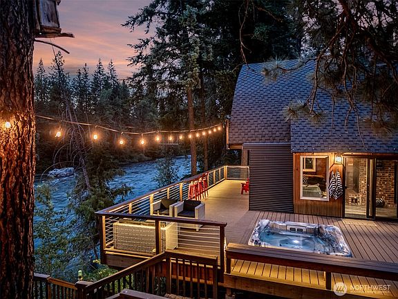 A luxurious, fully turnkey investment retreat on a magical stretch of the Wenatchee River awaits its next owner. Fully furnished and thoughtfully reimagined, this cabin blends contemporary style with natural beauty. Guests enjoy a striking interior remodel and multiple outdoor living spaces on a generous parcel just under three-quarters of an acre, with over 130 feet of sparkling riverfront, tucked away on a quiet dead-end street. Located in the heart of Plain, it’s a short stroll to the local grocery, hardware store, and winery. Generating approximately $150K per year in rental income, this rare riverfront gem offers both a peaceful escape and a proven short-term investment opportunity.