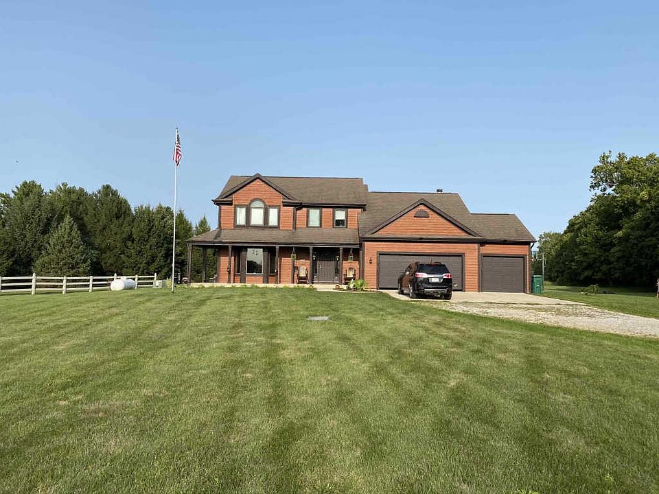 Multiple Offers Received. New Granite and Hardwood floors! Who needs a deer stand when you have a back porch? This 4 bedroom 2 and a half bath home on two acres in award winning Carroll Schools has all the privacy you have always dreamed of... Located on a quiet country road this home seems to be perfectly situated, just minutes from Parkview Regional Medical Center, I-69 and other daily necessities this home has the perfect balance of freedom and the ability to be in downtown Fort Wayne in 15 minutes. As you pull up the long drive you will fall in love with the sprawling front yard, green grass and the piece and quiet this home has to offer. The front porch is a great place to watch sunsets with an ice cold drink. Entering the home you notice the unique Australian Cypress hardwood floors (installed in 2015) that stretch throughout the foyer, oversized dinning room, kitchen, nook and laundry room. Newly installed level 3 Netuno Boardeaux Granite is truly one of a kind with rich colors, movement and depth. You will love the open concept as the kitchen and nook run directly into the living room. With a large wall of windows looking out over the backyard with daily visitors such as deer, eagles, racoons and much more. Brand new grey bamboo floors in the LR bring together the brick and dark colored living room trim... All four large bedrooms are upstairs. The master has a vaulted wall with a view of the front yard, complete with a en-suite, and walk-in closet. The basement is totally customizable to your needs, with plenty of space for a workshop, theater room, fitness room and more. New high efficiency furnace installed in '17, 2 hot water heaters as well. This one will sell fast call to set up your showing today.