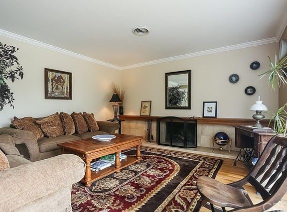 This home has scraped ceiling, Crown molding and original Oak wood flooring. Kitchen has Caesarstone counter top, Tile flooring, added cabinets with several glass doors. Double oven is electric, stove top is gas and built in microwave is above stove. All bathrooms have tile flooring, new sinks and new low flow toilets. All bedrooms have ceiling fans. New water lines plumbing with shut off values in home, by Repipe Specialists. The home also features a two car garage with cabinets along one wall. New roof and outside paint. Most of the inside has been painted also. Pool was plastered 3 years ago and new pool pump this year. The home is a 4 bedroom the 5th bedroom was converted into a T.V./den/office room. Back yard needs some work. Dogs on property.