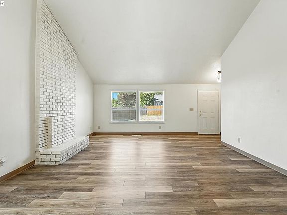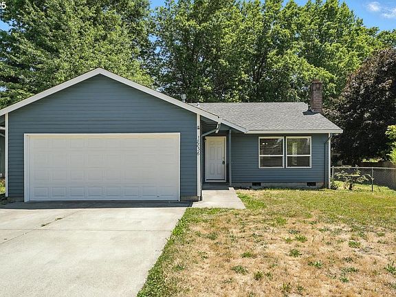 This is a great starter house with an excellent layout. Freshly painted, Luxury Vinyl Tile flooring, updated cabs, quartz style counters in bathrooms. The fireplace was bricked over but that can be removed - fireplace box was not used for decades. This home offers 3 bedrooms, one being a primary suite, and a hall bath. The living space/kitchen area is great room design. The garage is a boon for cars or hobbies. Conveniently located in Aloha, near the high school and swim center. Don't miss out, come tour this home at an affordable starter price!