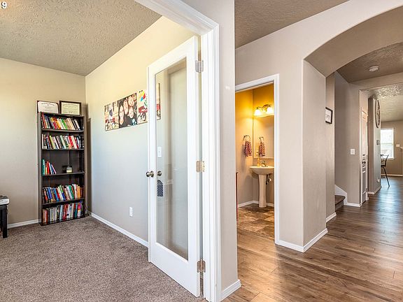 Entryway with office/den off to the left side. Kitchen features SS appliances, quartz countertops, breakfast bar, and pantry. Living Rm has built-ins on both sides of gas fireplace with high ceilings.Slider from dining room to cov patio making it great for entertaining. Large multi use loft area w/built-ins. Main level w/newer hardwood floors, plantation shades, and main level master suite which includes tub & shower.