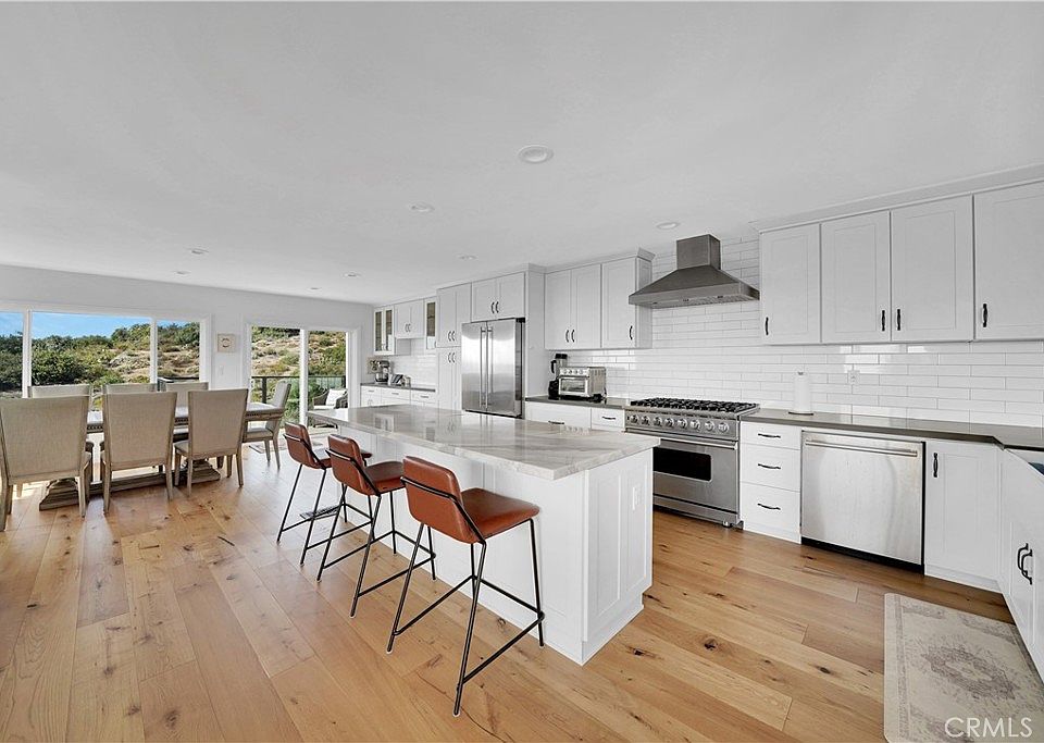 This stunning Laguna Beach home unveils captivating Ocean, Mountain, and Catalina views, complemented by an adjacent unbuildable lot to the right of the home. Boasting three bedrooms and three baths within its spacious 2,200+ square foot layout, this home has undergone a comprehensive remodel. Its prime location ensures easy access to the beach, nearby parks, and scenic hiking/biking trails, while an abundance of natural light enhances the living spaces. The top floor offers an open-concept layout, showcasing a living room with ocean vistas and a dining room framing panoramic mountain and ocean views. Noteworthy upgrades, including White Oak Du Chateau floors, marble countertops, stainless steel appliances including a Viking range, and four new balconies with glass railings and Azek decking, elevate the home's elegance. Additionally, there are new canned lights, new windows and roof, newly paved driveway with artificial turf inlays, plumbing & electrical upgrades, new AC & tankless water heater, custom closets, new stucco and siding, and more- the list of high-end upgrades is extensive. Nearby Moulton Meadows Park offers tennis, basketball, soccer, play structures, and world renowned hiking. Enjoy the essence of the Laguna Beach lifestyle in this meticulously renovated home!