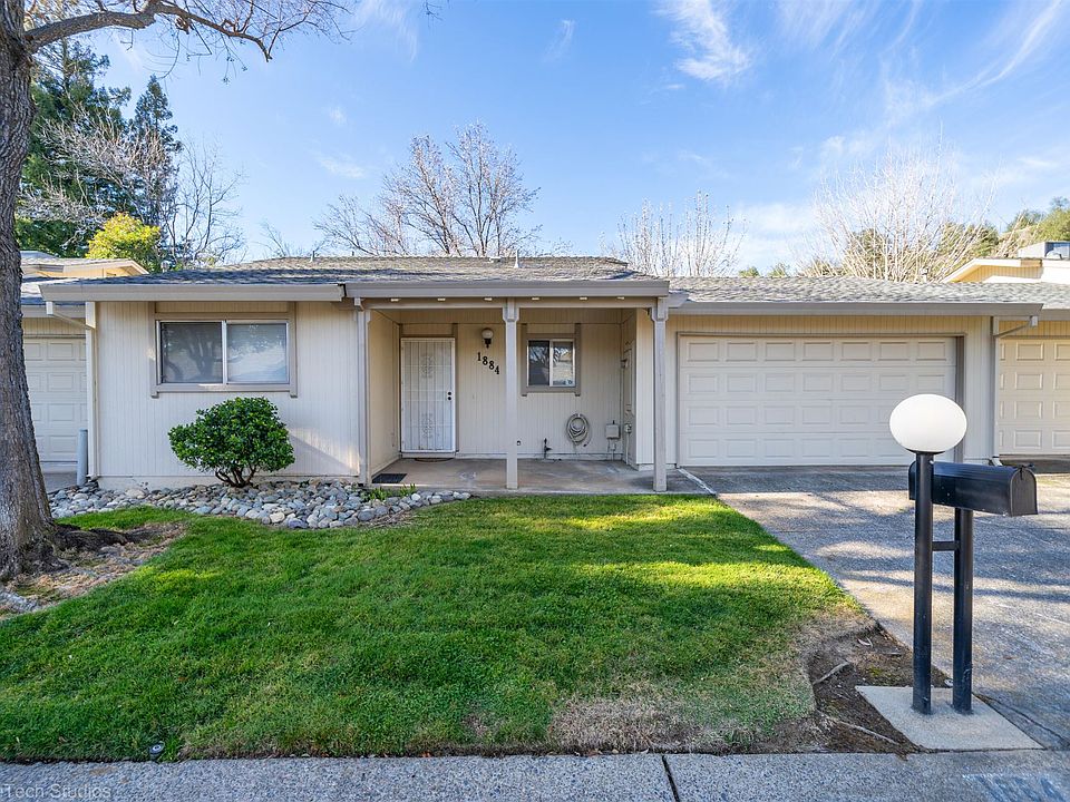 This conveniently located home is perfect for a first-time home buyer or someone looking to downsize. Nice open floor plan with 2 bedrooms & 2 bathrooms all on one level. Nice, covered patios on front & back of home. Fireplace in the living room for cozy winter fires, a built-in hutch in the dining area, & central heat and air. Great location near Caldwell Park, Lake Redding Golf Course, & the Sacramento River Trail. The HOA covers the maintenance of the building exterior, the roof, & front yard. There is a Community Pool & Club house.