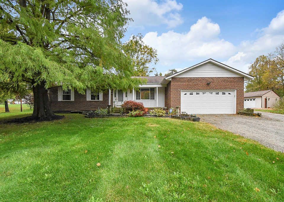 OPEN SUN 10/25 2-4pm. Hard-to-find ranch home on a full acre is beautifully landscaped with loads of perennials and mature trees! All neutral decor, ready for your personalization. Unfinished basement is CLEAN and dry and could add more living space. Nice deck off the back of the home offers great view, solitude, and room to roam for kids/pets. Very nice heated, detached barn will hold 2 cars, motorized toys, or would be a great work-shop... or SHE-shed! Creek on property.