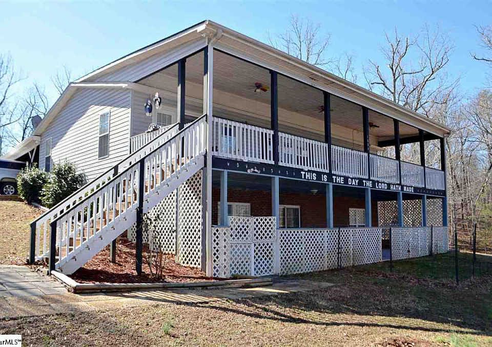 Call the Clayton Group at Keller Williams Realty for your showing - 864-895-8977! Looking to live close to your family, but do not want to be right in their “space” or want them right in yours? Or, are you looking for an opportunity to lease out space on your property and pay your mortgage payment from this income? This unique property offers all of this! Basically, we have a modular home sitting on a full finished basement (which is an in law suite), a separate manufactured home, and an almost 1700 square foot detached garage. This means there are three fully livable, separate spaces that can be occupied. A breathtaking stocked pond separates the two homes, which can give you a completely private feel between the two spaces! There are also mature trees that surround the eight acres of land that gives you a very private feel! The modular has three bedrooms, two baths, a living room with vaulted ceiling, fireplace, and attached two bay carport. The master has walk in closet, dual vanities, separate shower, and large soaking tub. The in law suite in the basement, has a living room that is open to a full kitchen. There is space for an island or table in the kitchen. There is also a full bath with walk in shower, two rooms with no closets (but currently used as bedrooms), and two unfinished storage rooms. The huge (48x12) double decker deck and patio complete each space and provide a beautiful over look to the pond. These are great covered areas to relax and enjoy fall, summer, and spring! There is a gate you can lock at the beginning of the driveway to keep you secure. The 53x32 detached garage has full power, 3 garage doors, and additional covered carport spaces. The manufactured home at the beginning of the property, is a 2001 model and has been extremely well maintained. It has a rock fireplace in the great room that is open to the kitchen and dinning area. The kitchen has plenty of counter tops and cabinets! A walk in laundry room is right off the side entry. The master is on one side and the secondary bedrooms are located on the other side of the home. The layout of this home is very nice. Three walk in closets in this home! The decking is extensive on this home, too! The 16x12 deck offers another round extension, and it also offers a great view of the pond! All structures were set up for maximum use of the land and pond views. The main house has a fully paved circular driveway completely around the home, so you have plenty of parking! This is an amazing buy for the right person! This property really offers so much more than said here! It is 8 full bedrooms and five full baths! All appliances convey with the homes. Please do not go down driveway without a confirmed appointment.