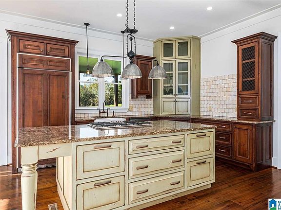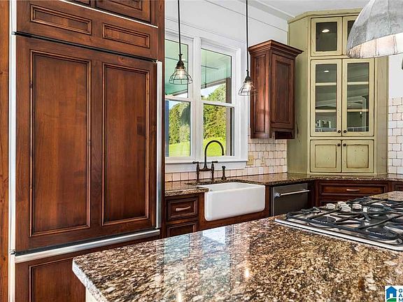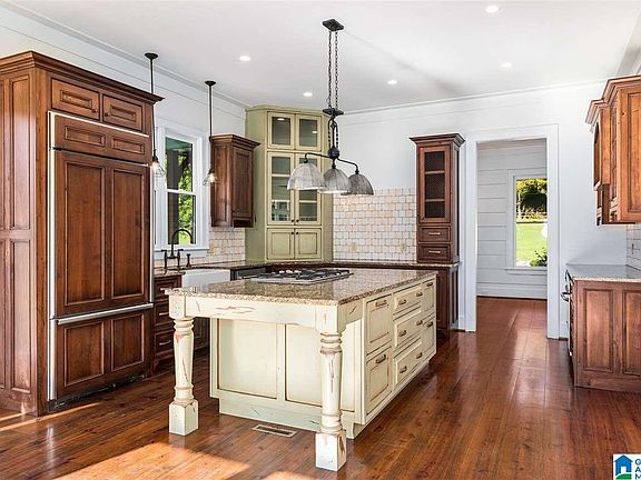 CUSTOM BUILT home on 35+/-AC with a FARMHOUSE feel. Just imagine...step into this home with soaring ceilings, unique new heart pine floors throughout, trimmed in crown molding. New paint throughout home. OPEN concept, GOURMET kitchen with 2 ovens, gas cooktop, large island, tons of storage, built in desk & eating area, formal dining room, great room with ceiling to floor stone wood burning fireplace, natural lighting throughout home. Main level master suite with oversized closet, double vanities, soaking tub and a huge separate shower. Open deck just off master bedroom. Second floor consist of another Master Suite, large den, 3 bedrooms. Home is surrounded by a babbling creek and fruit trees. 2 car main level garage and another detached 3 car garage with floored attic and car lift. Also, a Pole barn on property just over the creek. Bring your tractors, mowers, utility trailers, 4-Wheelers. Property is a one of a kind. Lots of pasture land for your horses. Just minutes to I-59.