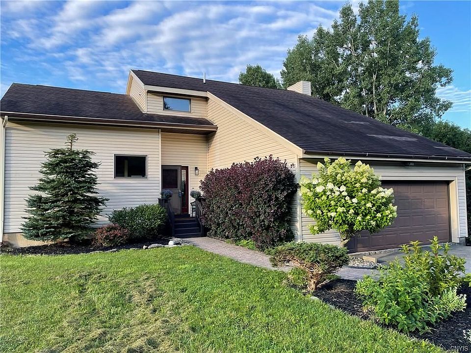 Location at it's finest. This contemporary home sits on 5.67 stunning acres with mature spectacular trees and foliage complete with a stream running through. You couldn't ask for a more beautiful setting. When you walk into the front door you are met with an open spacious living space with tons of natural light. The formal dining area has lots of windows and space as well. The kitchen is large and accommodates a generous working space, a dining area and plenty of room for more seating for entertaining or enjoying family time while you cook! The kitchen leads out to a deck and an amazing stone patio with a hot tub for your outdoor enjoyment. The first floor also boasts a bedroom and half bath. There are two bedrooms and one full bath on the second floor as well as a master suite that feels like you are sleeping in a tree house! This home also has a finished basement with an extra bedroom and a game room/family room for extra living space. There is a bonus room above the garage that is a dance studio presently, plenty of room to make it your own. The garage is attached and leads into the kitchen to make your life easier to unload your groceries!! Don't wait to act on this gem!!