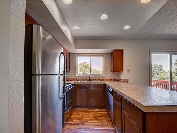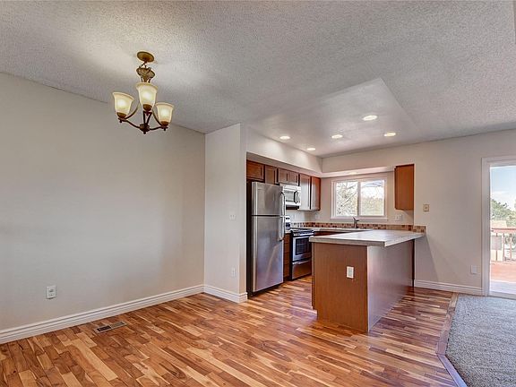 Take a look at this remodeled gem! New carpet and fresh paint, plus newer wood floors make this charmer stand-out. Move-in ready. The back yard is ready for your custom touches. Huge deck for relaxing summer BBQ's. Only minutes away from Buckley Air Force Base, E-470, Denver Tech Center, Park Meadows Mall, Denver International Airport and Southlands Mall. This unique split-level floor plan home features 4 bedrooms and 2 full baths. The large kitchen sports all stainless/black appliances, including refrigerator, microwave, dishwasher, stove/oven. Upgraded cabinets and nice oak wood floors round out the kitchen. Open family room on the main level and a large bonus family room on lower level. Large fenced yard with great deck and storage shed. Must see to appreciate. Convenient 1.5 car tandem garage. Washer/Dryer hook ups in the basement.