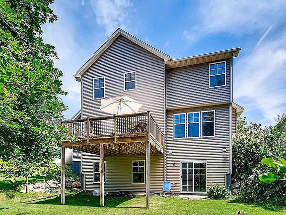 Fantastic custom built 2 story home located in the sought after Spring Hill neighborhood, a few blocks from East View Elementary, Century Middle School, and Lakeville North High School. Features include : private wooded walkout lot with pond view, 2 story foyer, 4 bedrooms on upper level, custom oak cabinets, staircases and build-ins, hardwood floors in foyer, kitchen, informal dining and half bath, gas fire place, private owner's suite with a large private bathroom and Jacuzzi tub, vaulted ceiling. New roof and new gutters 10/2019.
