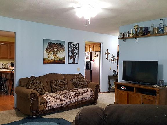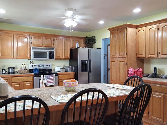 Beautiful 3Bedroom possibly 4, 3 Bath home with split bedroom plan on a 2 acre setting, large kitchen with lots of cabinets, bar seating eat in kitchen area, formal dining, nice laundry room, 2 car attached garage, covered front porch, patio in back, and storage shed. Master bedroom is large with master bath having a skylight, walk in shower, jetted tub and walk in closet. Big 2nd living area upstairs (that could be 4th bedroom) and full bath.