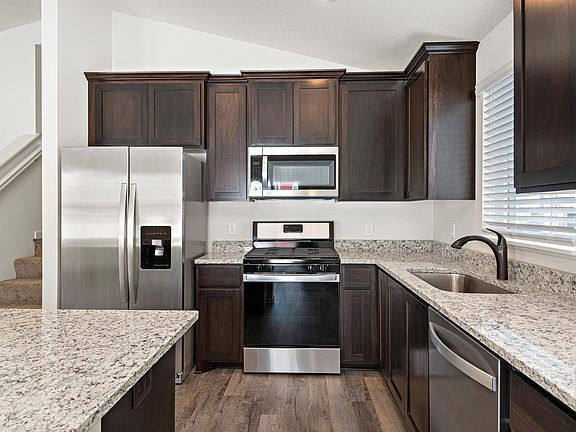 with includes a full set of stainless-steel Whirlpool® appliances, handcrafted wood cabinets, and