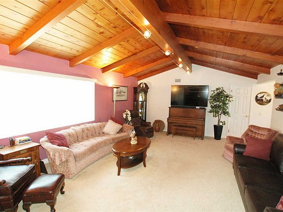 GRANITE HILLS BEAUTY ON 1.3 LEVEL ACRES REMODELED SINGLE STORY FENCED AND TRIPLE GATED TOTAL PULL THROUGH YARD FOR LARGE VEHICLES AND RVS REMODELED KITCHEN AND BATHS KITCHEN HAS QUARTZ COUNTER TOPS DOUBLE OVENS MICROWAVE AND PULL OUT PANTRY ALL APPLIANCES INCLUDED 20X35 RV HANGER SOLAR SYSTEM CENTRAL AIR AND HEAT DUAL PANE WINDOWS CIRCLE DRIVEWAY WITH ELECTRIC GATES WOOD BURNING FIREPLACE FRUIT TREES ROOM FOR HORSES PETS AND KIDS FHA VA TERMS OK, THIS HOME IS NOT A SHORT SALE A one story, 3 bedroom, 2 bath, 1,851 sf home on a 59241 plot of flat usable land with a back yard, 2 pastures plus a 20 ft by 35 ft high RV hanger for your toys. All fenced. The gourmet kitchen is composed of a 5 burner gas cook top, 2 wall ovens, microwave hood, refrigerator, quartz counters with glass tile back splash and a generous display of cabinets with 24 drawers. Lighting is recessed with dimmer controls. A separate water system in the house separates the irrigation water from the soft water system that is owned not leased. The security system is owned with Watchlight monitoring. Monitoring is approx. $134.40 a year. There are 21 Sunpower Solar Panels on the roof that are currently leased. Cable and Direct TV ready. Other home amenities: Tiled window sills, double pane windows through out, wood burning (Avalon) fireplace insert, central heating and air conditioning, ceiling fans in the bedrooms, 24" whole house fan, large enclosed storage area in the hall, smoke and carbon monoxide detectors, vaulted open beam natural wood ceiling in the living room. Also included is an upright freezer, washer, & dryer. Property amenities: Electric security gates, Marantee garage door openers, 2 outside dedicated 30 amp RV power circuits, front 110 volt power pedestals, dedicated x-mas light circuit with timers, outside x-mas light, garland, belles ect. There are overhead bubble light a ceiling fan and a sundance spa in the breezeway. The exterior of the house has rough cut cedar siding and the house is plank and pier construction. There are 6 bearing citrus trees and 2 bearing pomegranate bushes on the property mostly watered with recycled water. Drip irrigation is in the front and overhead in the back yard. Outside storage consist of 3 secured sheds and 3 non secured sheds. There is an "Elephant Trunk" or locked container outside the front gates for receiving packages. There are 43,560 sf in an acre. So the property with 59,241 sf of flat usable land and all utilities at the property line is worth more than the asking price of the land and house. A win, win situation!!