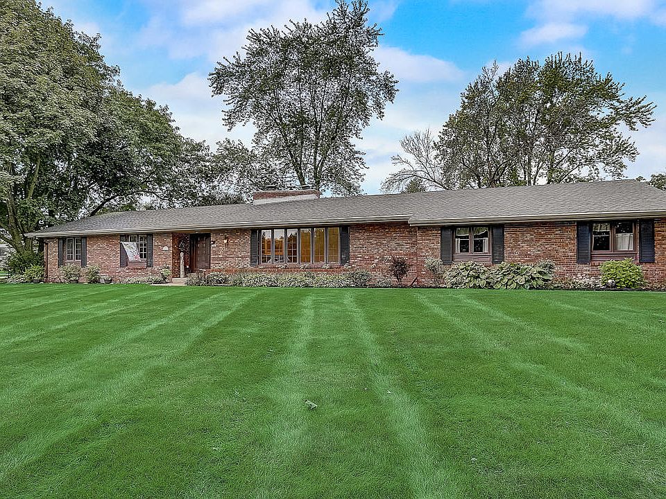 Stately all-brick ranch on picturesque lot in the heart of Brookfield. Over 3,000 sq ft w/3BR, 2.5BA plus huge 1st flr laundry (perfect mudroom w/10'x6' cedar closet). Beautiful stone, attention-grabbing floor to ceiling, 2-way GFP as you enter & also enjoy from the LR, FR & DR. Walls of windows overlook park-like yard filled w/lush ''no care'' perennials & mature trees. Large eat-in Kit has breakfast bar, loads of cabinets, counters & desk; open to FR. Generous-sized bedrooms include Master w/private bath. Full bath has dual vanity and, powder room is off back hallway. LL expands your living space with huge rec room perfect for teen hangout, workout area & more. Near Greenway Trail for miles of paths. Minutes from Elmbrook schools, restaurants,hospital, shopping & public library