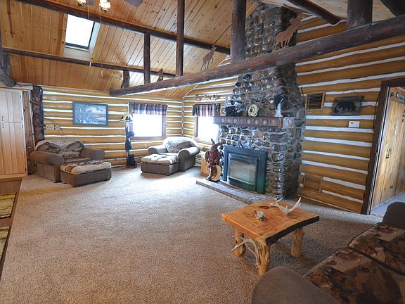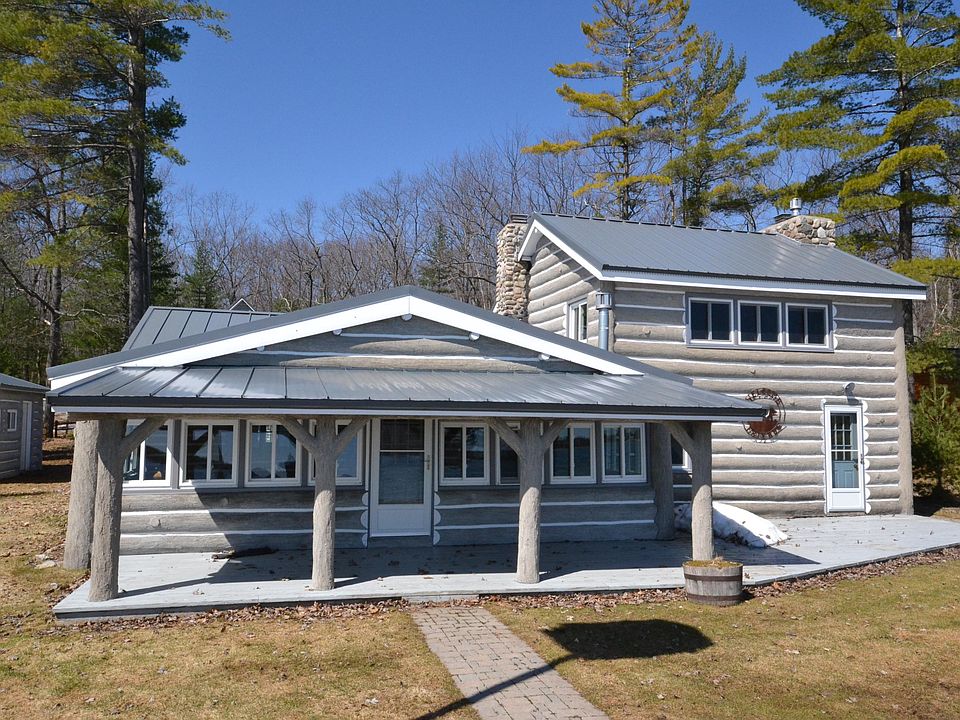 Fabulous frontage on East Twin Lake, directly across from the famous island, this 2 bedroom 2 bath log home has an updated kitchen, new carpet, great floors and lots of original interior charms with custom upgrades. Two fireplaces, 1 stall garage a boathouse and outdoor BBQ.