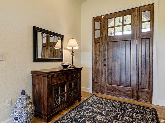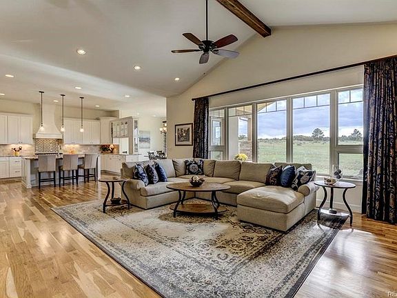 This spectacular Ranch style home on 6 acres is ready for you to move right in. Relax away from all the hustle and bustle. Located off Scenic Hwy 86 between Franktown & Elizabeth. Only minutes from all the amenities Parker and Castle Rock provide. Custom built-ins thru out provide efficient organized storage. Kitchen features solid Brazilian White Tiger Granite; 5 burner gas cook top; large 5X7 walk-in pantry plus more. Interior Designer finished each of the bathrooms with a custom tile design. The home boasts unique finishes of Natural White Oak Flooring; Granite, Quartz and Cement counter tops thru out; Custom Draperies and many more extras. Home also features quality built 2X6 construction; Cat 6 wire network; wireless sec alarm; zoned cooling/heating; plus more. The large finished oversized garage is a Man's Cave! Vented Compressor room and internally piped for air connections; amps for compressor; welder and car lift and many more features. Why build new when you can just move in!