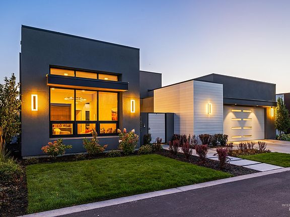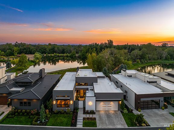 This is the one you've been waiting for - luxury Eagle living along the Boise River. Exquisite contemporary home perfectly positioned on a premier waterfront site nestled between two pristine lakes in the highly sought-after gated community of Renovare. Steps from the Boise River with direct access to the Greenbelt. The 10’ x 15’ stackable sliders open to a gorgeous patio with an outdoor kitchen, ideal for entertaining while enjoying serene views. Inside, a state-of-the-art Crestron home system offers effortless smart home control with store-front style windows throughout. Enjoy a gourmet kitchen with quartz counters, double ovens, a paneled fridge, and a butler’s pantry. A newly added bonus room features a wet bar and fireplace, creating the ultimate retreat. Enjoy the ease of automatic shades and step onto the private community walking path with access to the public Greenbelt trail. Walking distance to coffee shops and restaurants, downtown Eagle and just 15 minutes from downtown Boise.