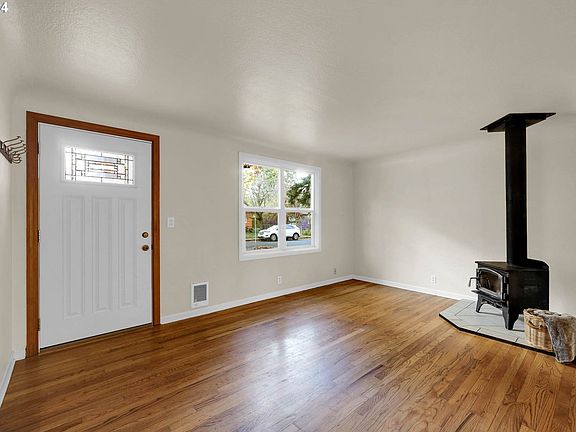 Nestled in a peaceful Far West neighborhood, this charming bungalow offers a cozy, timeless feel. The interior has been freshly painted, complementing the warmth of hardwood floors throughout. The living room features a wood-burning stove, coved ceiling, and built-in features that add both style and practicality. The bright kitchen showcases a butcher block counter and a bay window, filling the space with natural light. This home has two bedrooms and one bathroom, plus a flexible office with French doors and built-in bookshelves, which could serve as a third bedroom. A brand-new roof provides added peace of mind, making this home move-in ready for the new year. Other recent updates include a newer HVAC system. The standout feature of this property is its expansive .20-acre lot, offering an abundance of outdoor space. The large fenced backyard provides endless possibilities—ideal for gardening, play, or future projects. A covered deck invites outdoor relaxation, while garden beds and a tool shed are perfect for hobbyists. Situated near parks, schools, shopping, and public transportation, this home offers the convenience of West Eugene living while being close to the Friendly Street neighborhood and Westmoreland Park. Don't miss the chance to make this home your own!