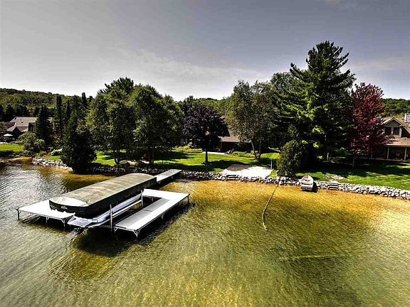 With over 150` of sandy frontage and expansive southern\sunny views of Walloon Lake, this immaculate Walloon home enjoys a commanding presence atop Walloon`s north arm. It features 5 bedrooms, 3.5 baths, 2 kitchens, and plenty of living space. High-end kitchens and baths, a huge garage, and an expansive covered porch make this the perfect fit for a Walloon buyer looking for a location close to Petoskey. Home comes with up-north charm, top-end amenities, dock and shore station, and upgrades at every turn, and the best hard-packed sandy bottom in the north arm...