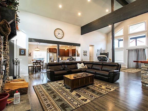Beautiful custom home "dubbed as A LITTLE SLICE OF HEAVEN" is on large lot, .70 acres, with views of Lake Cascade, Valley and West Mountain. Located just to the south of Tamarack Resort and Ski area. A stone's throw to Poison Creek Campground, beach and boat launch, snowmobiling, ice fishing, 4 wheeling, hiking and more. Large covered patios, one with outdoor stone fireplace and hot tub for entertaining. Open floor plan with vaulted ceilings, wood beam accents and lots of south facing windows for solar gain. Floor to ceiling stone fireplace. Includes a custom bar with keg tapper and refrigeration. Granite counter tops and wood flooring. Oversized 2 car garage and carport for lots of toys. Home is air conditioned, has its own generator which will go on automatically if the power goes out. This house was well thought out and has too many extras to list. A must to see and appreciate. Short term rentals are allowed. Tractor is not included.