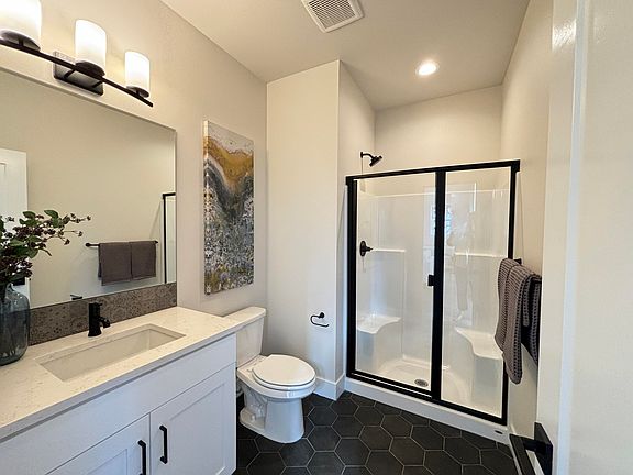 This home, by Stone Bridge Homes NW in Bend's Westhaven neighborhood, features a main-level with a full bath and a bedroom. The kitchen and great room are light and bright with hardwood flooring, stainless appliances, quartz countertops, and a gas fireplace with a floor-to-ceiling tile surround. On the second level, you will find a grand primary suite with double vanities, a tile shower, a walk-in closet, and a separate linen closet. The bonus room also makes a great second gathering area. This home comes equipped with A/C, fencing, and front and back yard landscape and is Earth Advantage certified. The buyer will also receive a 2-10 Home Buyer's warranty.