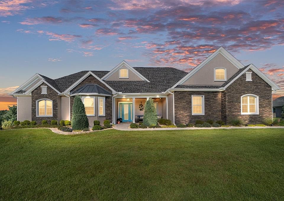Impeccable turnkey French country home, 3,676 living square feet under air. Sitting on .87 acres completely fenced offering lush mature landscaping with breathtaking views of agricultural greenery. Within highly desirable gated community of Irish Acres. Only 10 minutes from the World Equestrian Center. The home is complete with three bedrooms, three full baths and a bonus room above the garage easily used as a fourth bedroom, media room or flex space. Privacy for each guest and family member. Home is designed with an exquisite office with fiber optic internet great to work from home. Amazing entertainment spaces flow to the summer kitchen area unified with a gas fireplace and beverage cooler. Paver patio 40-by-18 feet with custom walls & lighting. This residence is graced with soaring 10-foot ceilings and wall-to-wall windows, built-in features, solid doors, crown molding, porcelain tile, surround sound with smart home and high-end security system, tray ceilings and custom woodwork galore. Plantation shutters and custom blinds throughout. Every detail was carefully selected and quality crafted. The primary suite encompasses an opulent en-suite bath with a soaking tub and a separate glass shower. Last but not least, a gourmet kitchen that will inspire your inner chef with its granite countertops, soft-close drawers, a center island with seating, large pantry, and premium finishes and fixtures including custom light lacquer cabinets and professional-grade stainless steel appliances to include gas range, wall oven and microwave, fridge and dishwasher. Tankless water heaters, owned water softener and buried propane tank. The garage flooring is newly covered with epoxy coating, and there’s a transferable termite bond and so much more! You'll also love the convenience to Ocala or Gainesville, Interstate 75, great shops, medical facilities and restaurants!