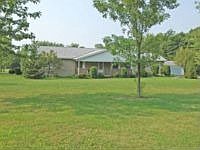 The possibilities are endless! Bring the horses, 4-H animals, cars and boats. Brick ranch features a spacious great room, wood burning fireplace, skylights, semi-finished lower level with kitchenette, walkout to patio, covered deck for outdoor enjoyment plus 2 car attached and 3 car detached garages.