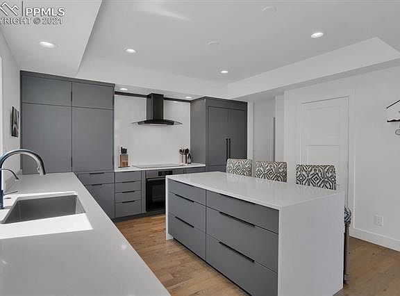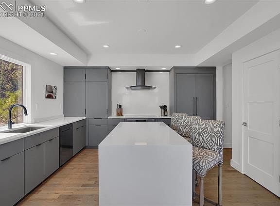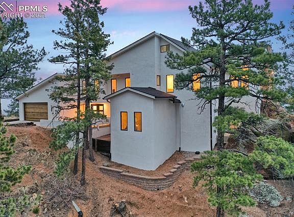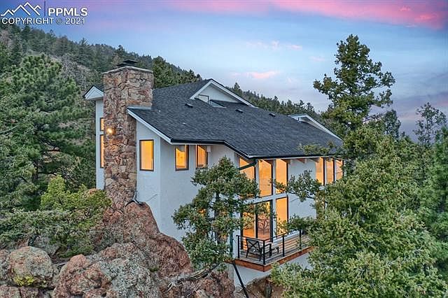 MOUNTAIN MODERN * EXCEPTIONAL UPDATES * 4.9 ACRES * AMAZING CITY VIEWS * GORGEOUS FINISH WORK THROUGHOUT * DACOR APPLIANCES * CHIC BATHROOMS * GOURMET KITCHEN * ENGINEERED WOOD FLOORS * OPEN CONCEPT * UPDATED PLUMBING AND HVAC * 4 CAR GARAGE * NEW ROOF (2018) * WELL * QUARTZ SURFACES* ROCK ACCENTS * RADIANT FLOOR HEATING * NEW FRONT DOOR AND GARAGE DOOR This is a one of a kind find nestled in Cheyenne Mountain with the most amazing views of the entire city. These sellers spared no expense and have completely remodeled this home with custom and chic finishes throughout. Everything has a sleek and minimalist aesthetic while being married with a comfortable and inviting vibe. The main level boasts gorgeous floating engineered wood flooring, a ventless linear modern fireplace, windows galore and so much more. The house was built around the mountain and boasts an interior rock wall adding even more drama to this already fantastic home. The kitchen is a true gourmet's delight with waterfall countertops, contemporary and timeless cabinetry and Dacor appliances. This kitchen is without a doubt a showstopper! Meander to the second level and you will be dazzled with the spacious master retreat with an adjoining spa inspired bathroom centered around a freestanding tub and glass enclosed shower with two entrances. The undermount lighting and stylish light feature help create a zen-like space. One of the bedrooms has removable turrets which makes for a magical experience for any kiddo. Plumbing, roof, stucco and electrical have been updated throughout the remodel. This property boasts a household well, septic system, motorized solar shades, Kionics water filtration system and reverse osmosis drinking water filtration system