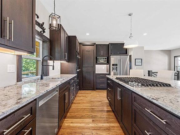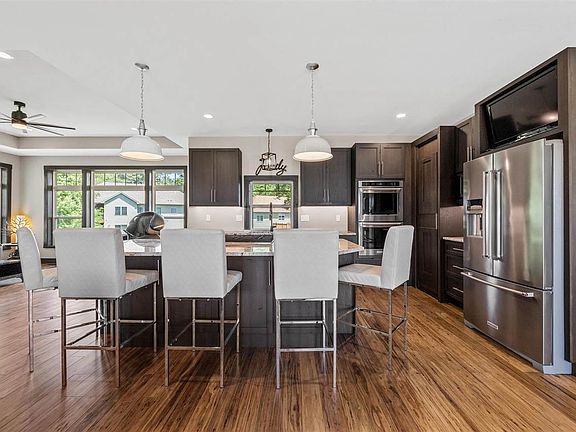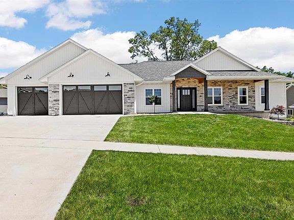 Welcome to this one of a kind custom built zero entry home situated on an oversized lot in the highly desired town of Ely and College Community school district! Main level features an exquisite open floor plan with nine foot ceilings and fossilized hardwood floors! Gourmet kitchen with Bertch hickory cabinets, hidden walk-in pantry with tons of storage, huge center island with breakfast bar, granite tops, and stainless appliances. Spacious primary suite with office capability, walk-in closet and rear deck with four seasons room access. Four seasons room is complete with pine lined walls and bright and double hung windows that allow top and bottom ventilation! Primary bath has dual vanity, tile shower, and separate soaking tub. Large main floor laundry conveniently located right off the primary suite! Walkout lower level is amazing for entertaining and boasts 12 foot custom white steel ceilings (yes you can actually play indoor cornhole!). Massive wet bar with granite countertops, tons of cabinet space, full wine refrigerator, full refrigerator and dishwasher. Family room with gas fireplace, 1/2 bath, and two primary sized bedrooms with Jack and Jill bath and laundry hookups! Walkout leads to a huge covered deck! Jumbo heated garage with extra deep 3rd stall and has its own bathroom with A/C! Home is incredibly efficient, with spray foam insulation, thick vinyl siding, and 50 year shingles! This home is an absolute must see!!