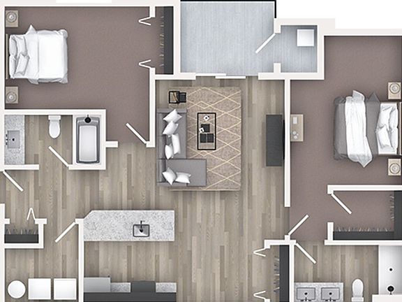All apartment homes feature granite countertops in both the kitchen and bathrooms, shiny stainless-steel appliances, and their own HVAC system for heating and cooling. Plus, you'll love the window blinds for privacy! Each apartment also features spacious walk-in laundry rooms. This apartment also includes ceiling fans in the bedroom(s) and laminate vinyl plank flooring throughout-no carpet. The 2-bedroom, 2-bathroom layout offers both a shower-tub combo and a walk-in shower for added convenience and choice. Conveniently located within walking distance of shops, grocery stores, restaurants, and bike trails.