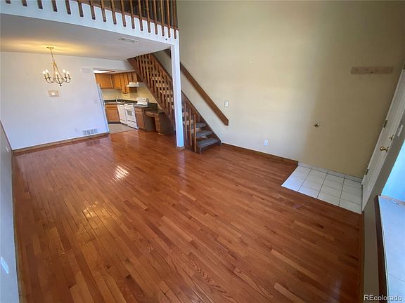Wow, enter a great floor plan with gleaming hardwood floors, two stories & two veritable Master Bedrooms! Walk into soaring vaulted ceilings and a sky-lite. The living room provides a dining room space too. This condo is super clean and extensively updated with new appliances, new counter tops, newer A/C, new hot water heater and more. The wood blinds are very nice and complement the wood floors and designer paint colors. The two bedrooms overlook the community swimming pool below. There is a very nice deck associated with the main floor bedroom. This condo has a very nice balance with various living spaces! Walk across the street, (100 feet) to the bus stop that runs direct to downtown Denver. There is one reserved parking space an extra guest parking spaces too. The Highline Canal is another great feature here. Walk just a couple of blocks south to the Highline Canal trail access point on Quebec Way. Enjoy a fantastic "Tree House" setting in this condo! Call now for more information or to schedule your tour and be sure to check out the video walk through tour via the link below.