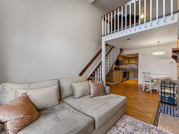 Welcome to the Light and bright 2 story condo in Topaz at Indian Creek! This 2 bed, 2 bath home in Denver offers a cozy and functional kitchen, making it a perfect place to start your homeowner dreams. One of the highlights of this home is the wood burning fireplace, which comes in handy during those arctic blasts and warms the entire home. The loft and high ceilings in the family room give this condo an airy feeling, creating a welcoming and spacious atmosphere. The primary bedroom is conveniently located on the main floor and offers two closets for ample storage space. The second bedroom is situated upstairs, providing privacy and separation. Both bathrooms have been tastefully updated, ensuring a modern and fresh feel. The kitchen appliances, HVAC, and new storage door were all recently installed in 2019, a fresh coat of paint has just been completed, meaning there is nothing to do here but move in and enjoy. Included in the sale are the washer and dryer, making laundry a breeze. Topaz at Indian Creek provides excellent community amenities such as a pool and a park, allowing you to relax and unwind in the warmer months. Additionally, the central location of this condo makes it easy to access downtown, the DTC, or I-225, ensuring all your commuting needs are met. For outdoor enthusiasts, the nearby highline canal offers opportunities for recreation and leisurely strolls. Whether you prefer biking, jogging, or simply connecting with nature, this location has it all. Don't miss out on this opportunity to own a beautiful and well-maintained condo in the desirable Topaz at Indian Creek community. Move-in ready and boasting a combination of comfort, functionality, and convenience, this home is ready to welcome you.