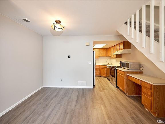 Step into this exceptional 2-bedroom, 2-bathroom condo nestled in a prime Denver central location. With an open floor plan, this space boasts plenty of room for comfortable living, complete with vaulted ceilings, a loft, deck, and extra storage space. For chilly Colorado evenings, cozy up by the wood burning fireplace. The dining area is perfect for starting your day with breakfast or entertaining friends around the table. The two bedrooms are thoughtfully placed on separate levels for increased privacy. Updates include brand new carpet and paint through all the entire home as well as newer furnace installed in 2021. The kitchen is a cook's dream with an oven/stove, stainless steel fridge, stainless steel sink, dishwasher, microwave, and large pantry. Enjoy community amenities such as the pool, playground, and dog run. Living and commuting are a breeze with convenient access to shopping, open space, I-25, and I-225 and DTC. This home is sure to be a perfect fit for you!
