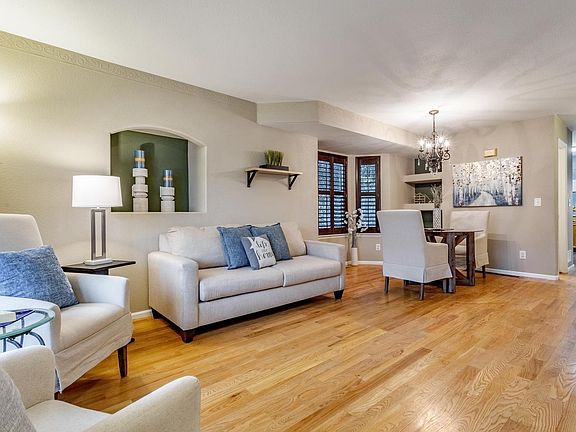 Newer contemporary design with very usable floor plan * Well managed HOA covers basics except gas and electric * Quiet End unit with oak wood floor in living-dining * Large kitchen with granite counters, new sink/faucet, tiled floor, island, pantry * 3 baths include half bath on main, large master bath & 2nd bath on upper floor * Master Suite has 2 large closets & oversized bathroom * Finished family room in basement * Storage area in unfinished utility room * Nice size wood deck overlooks green space * Community has dog park, large playground, outdoor pool, visitor parking * Highline Canal is close with miles of walking and biking * Newer hot water heater, appliances included * This end unit includes main floor bay window & many exterior windows * Unit has 2 assigned parking spaces including a carport & a reserved space * Carport is right in front of unit * OPEN HOUSE Sat. Nov. 16 from 12 noon to 3 p.m.
