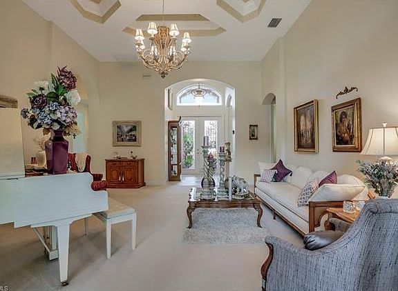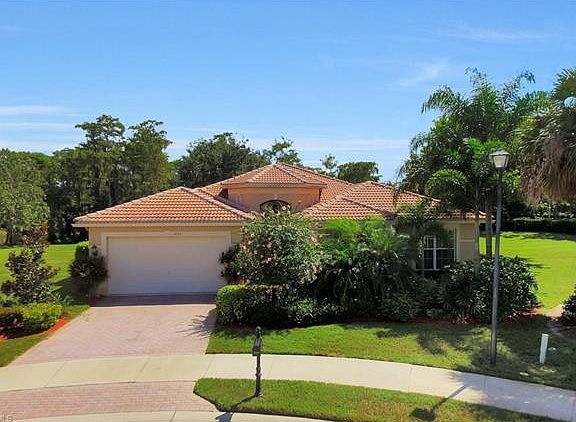 HUGE, PIE SHAPED, CUL-DE-SAC LOT!! A LOT to Love! This immaculate and well maintained "Pearl" is situated on the end of a quiet street with Preserve Views. You are greeted with lush landscaping, Glass Front Doors, 12' Ceilings, Custom Coffered Ceiling, Decorative Columns, extended screened lanai, and an elegant floorplan, perfect for entertaining. The upgraded Kitchen features solid wood cabinets with matching bar front, granite counters, marble backsplash, and built in pantry. Master Suite offers his & her walk in closets with built-ins and bath with soaking tub, walk in shower, and dual vanities with marble counter tops. Other fine appointments of this home include high hats throughout, diagonal tile, custom window treatments, New Hot Water Heater, and Two New AC Units, just to name a few. Saturnia Lakes offers a heated resort pool, lap pool, kiddie pool, hot tub, fitness room, dance studio, internet cafe, saunas, massage rooms, billiards room, grande ballroom, 4 clay tennis courts, playground, basket ball court, putting green, and miles of walking paths throughout the neighborhood. Only 1.5 miles east of I75, 12 min to the Beach & 41, 20 min from Downtown Naples.