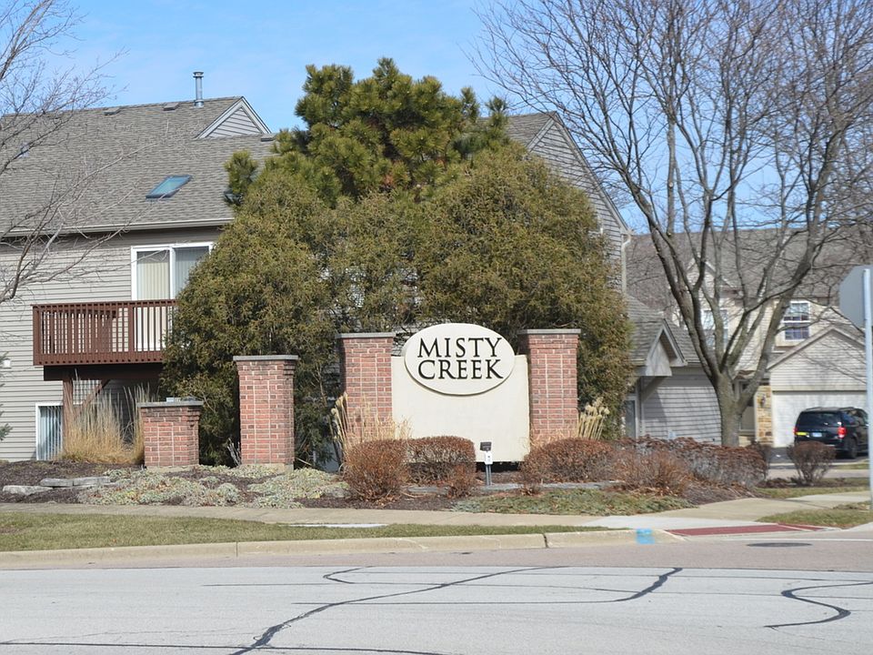 Highly Sought After Brookdale Model located in Misty Creek subdivision! This is a two story foyer leading to first level HW flooring though 1st level. Oak cabinetry kitchen with breakfast bar.l Large Living/dining room combo leading to large deck that overlooks common area. The 2nd level consists of laundry room, spacious second bedroom, white trim package with 6 panel doors, small loft area & large master bedroom with cathedral ceiling, two(2) closets, shared master bath. Hunter Douglas Shades & All Window Treatments Stay. Close to all area restaurant, shopping, recreation and major highways. Walking distance to park and District 308 Elementary School!